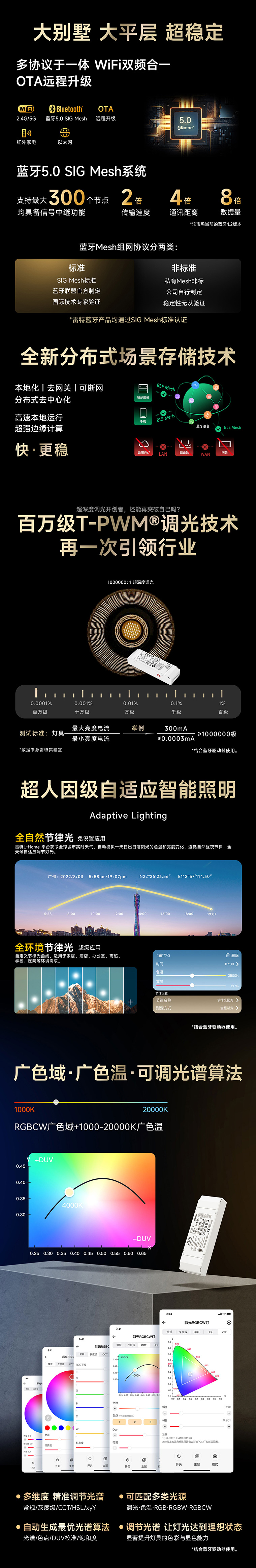 蓝牙5.0智能电源具备T-PWM®百万级超深度调光技术