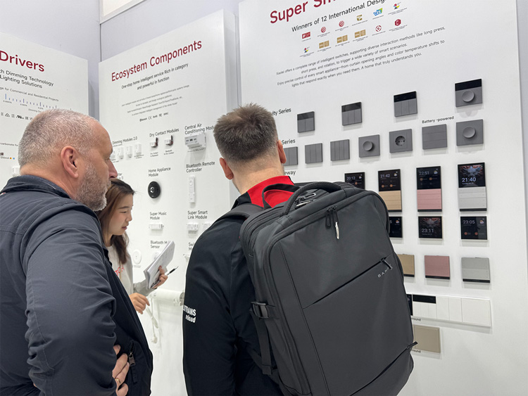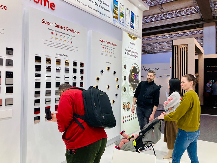 带来摩德纳系列智能面板、迪拜系列智能旋钮、超级智能面板系列等明星产品,兼具前沿工业设计美学与极致操作体验,斩获13项国际设计大奖,成为现场视觉与功能的双重亮点。