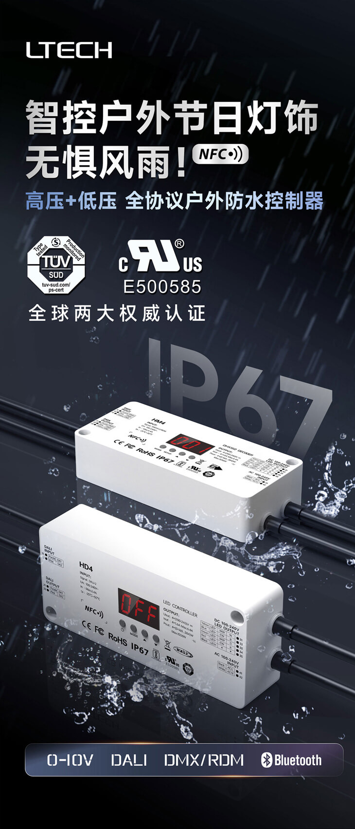 覆盖DALI/DMX/0-10V/蓝牙协议的防水控制器矩阵