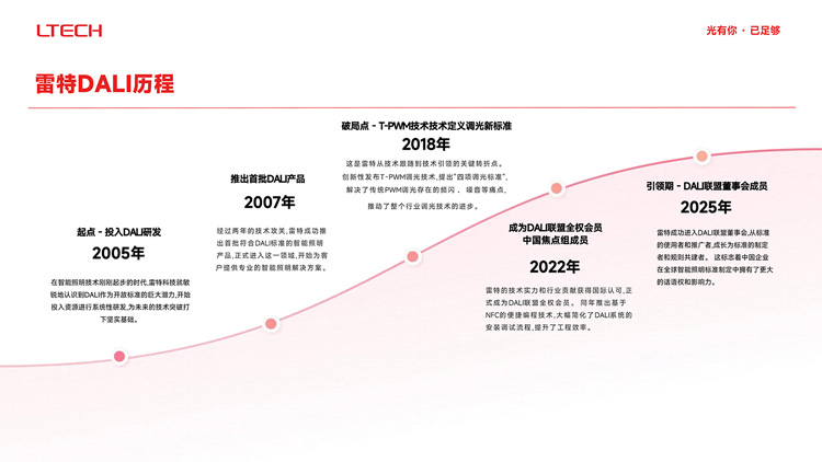 第六届 DALI 联盟中国区生态伙伴大会暨DALI中国奖颁奖典礼已圆满落幕。雷特很荣幸能够与照明行业翘楚共聚一堂,亦将继续履行好DALI联盟董事会成员的职责,以技术创新为核心,以开放生态为导向,不断探索 DALI 技术在更多场景的应用可能性,为智能照明行业的发展贡献更多力量,与行业伙伴携手共绘智能照明新蓝图。