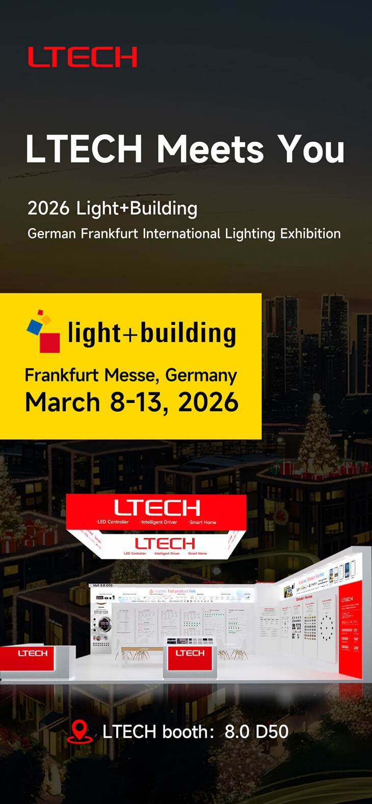 The Frankfurt International Lighting Exhibition 2026 will run until March 13. LTECH is looking forward to your visit at booth D50 in Hall 8.0, where you can enjoy an immersive experience of our full range of intelligent lighting control products. Professional technical and business teams will be on site throughout the event to provide you with tailored one-stop intelligent lighting solutions and conduct in-depth alignment with global market demands.