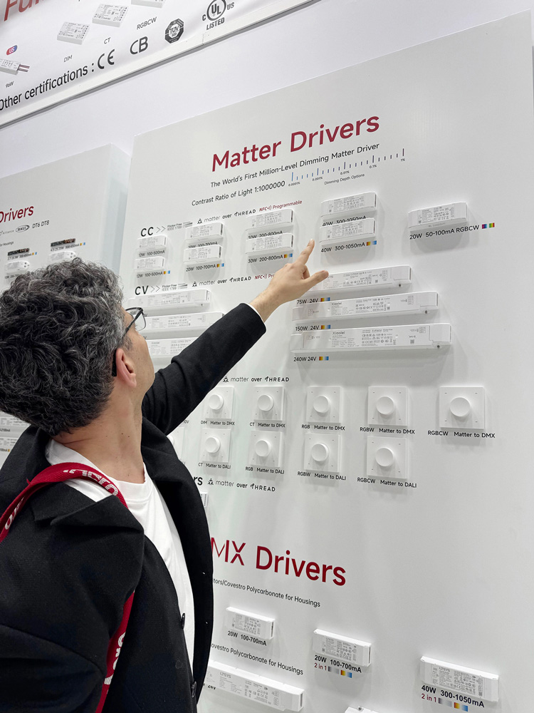 · Intelligent LED Drivers: Matter-compatible drivers break down ecosystem barriers, enabling seamless whole-home lighting integration. The LF Series linear drivers, available in built-in and external versions, strictly comply with Zhaga Book 13 and Book 24 standards — ideal for a wide range of lighting environments.