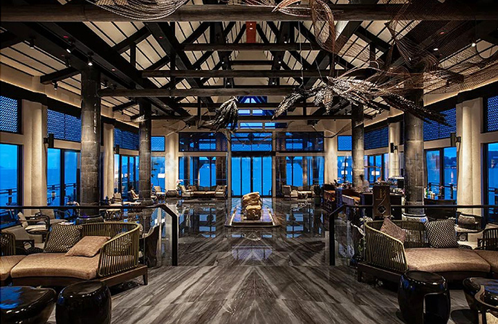 酒店大堂设计意境深远,凤兮凤兮归故乡,遨游四海求其凰,凤·凰栖于凤凰湾,便是“归”的象征。