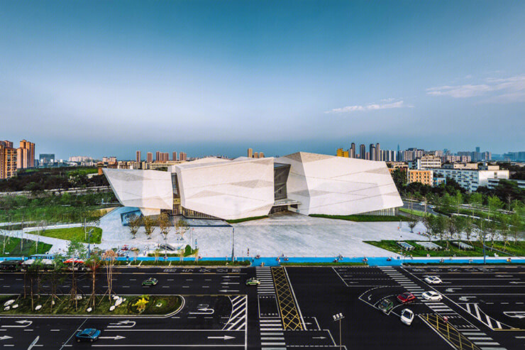 走在成都的成华大道上、步至东华一路交汇处,一座如岩石般棱角锋利的建筑矗立其中、勾勒出成都的独特天际线——这便是成都自然博物馆。