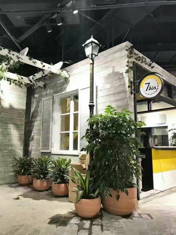 灯光映衬下绿植显得青翠欲滴,让人仿佛置身于世外桃源