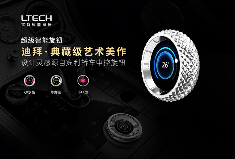 另一系列爆款智能家居“艺术品”,则是今年雷特同期推出的迪拜系列·超级智能旋钮。以360片钻石切割面设计、旋转自带阻尼音效与手感,铸造智能旋钮中的艺术品。更是业内首款蓝牙5.0 SIG Mesh协议的无线带屏幕智能旋钮,让现场来宾爱不惜手!