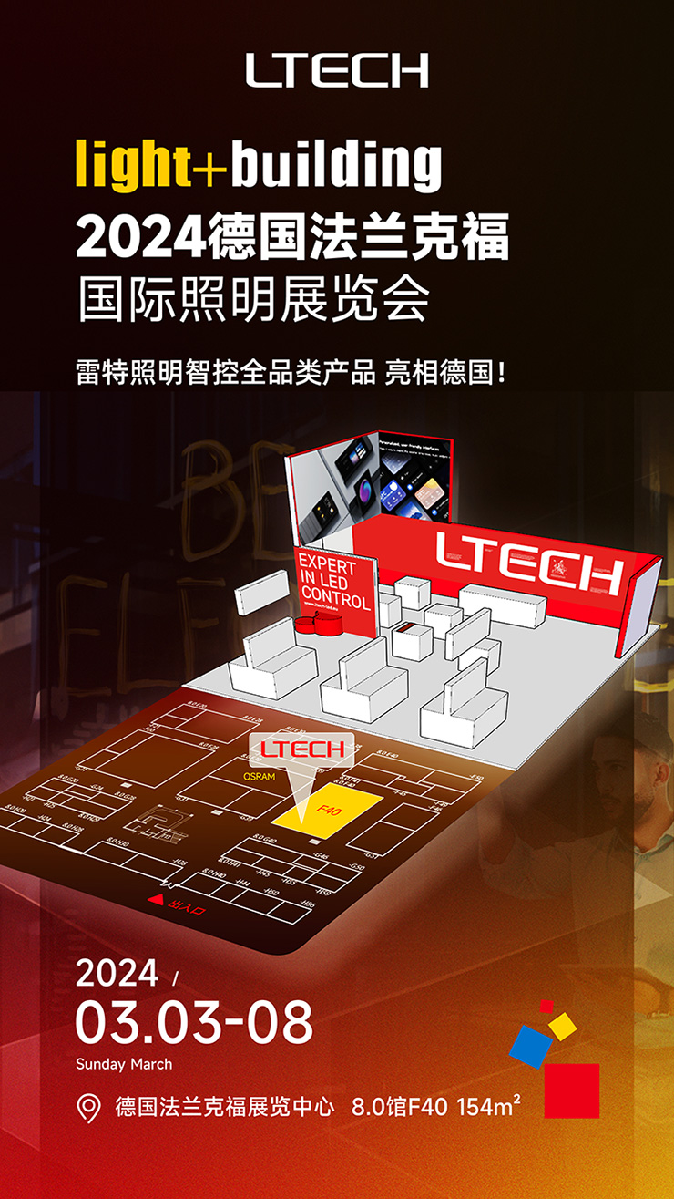 一连六天的light+building德国·法兰克福国际照明展览会,将在2024年3月3日-8日与大家见面。雷特在德国法兰克福展览中心8.0馆 F40展位与大家相约!