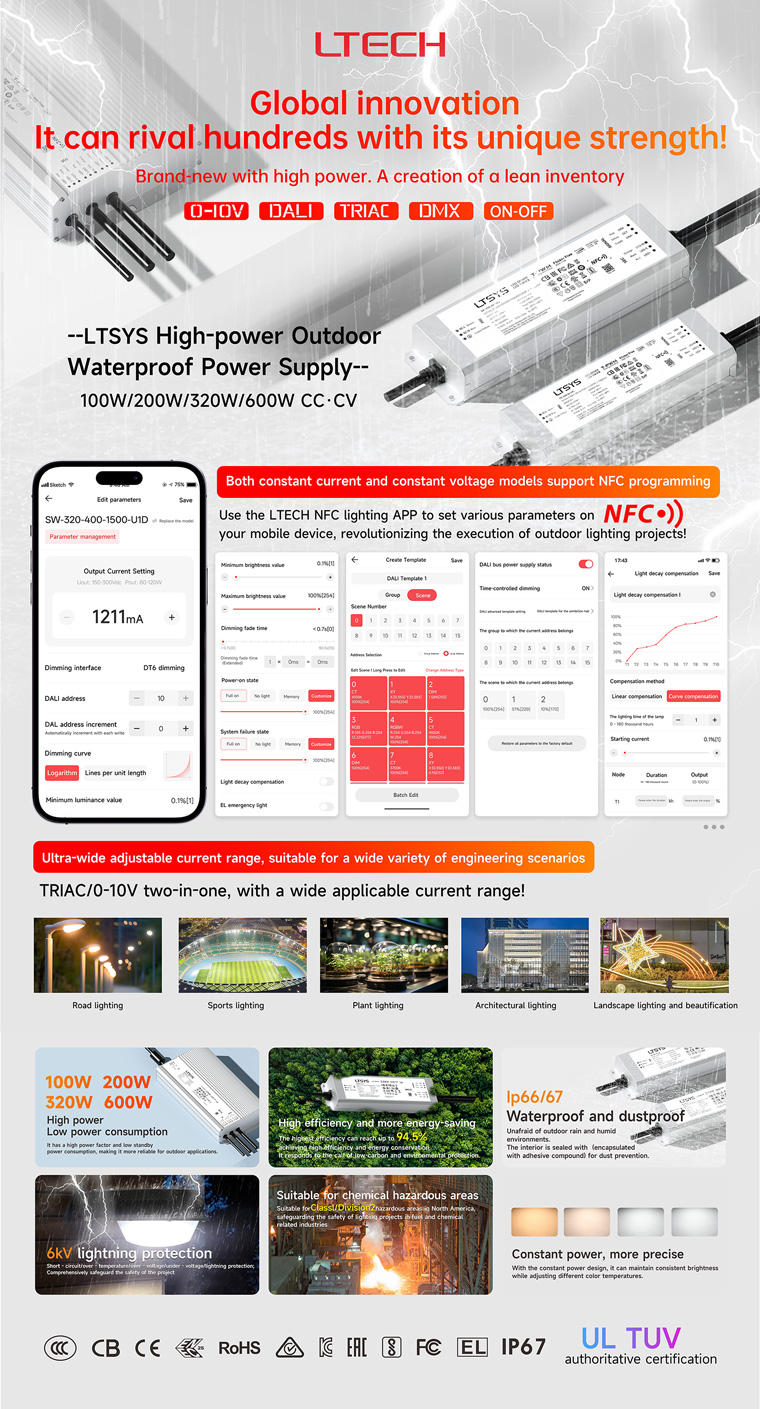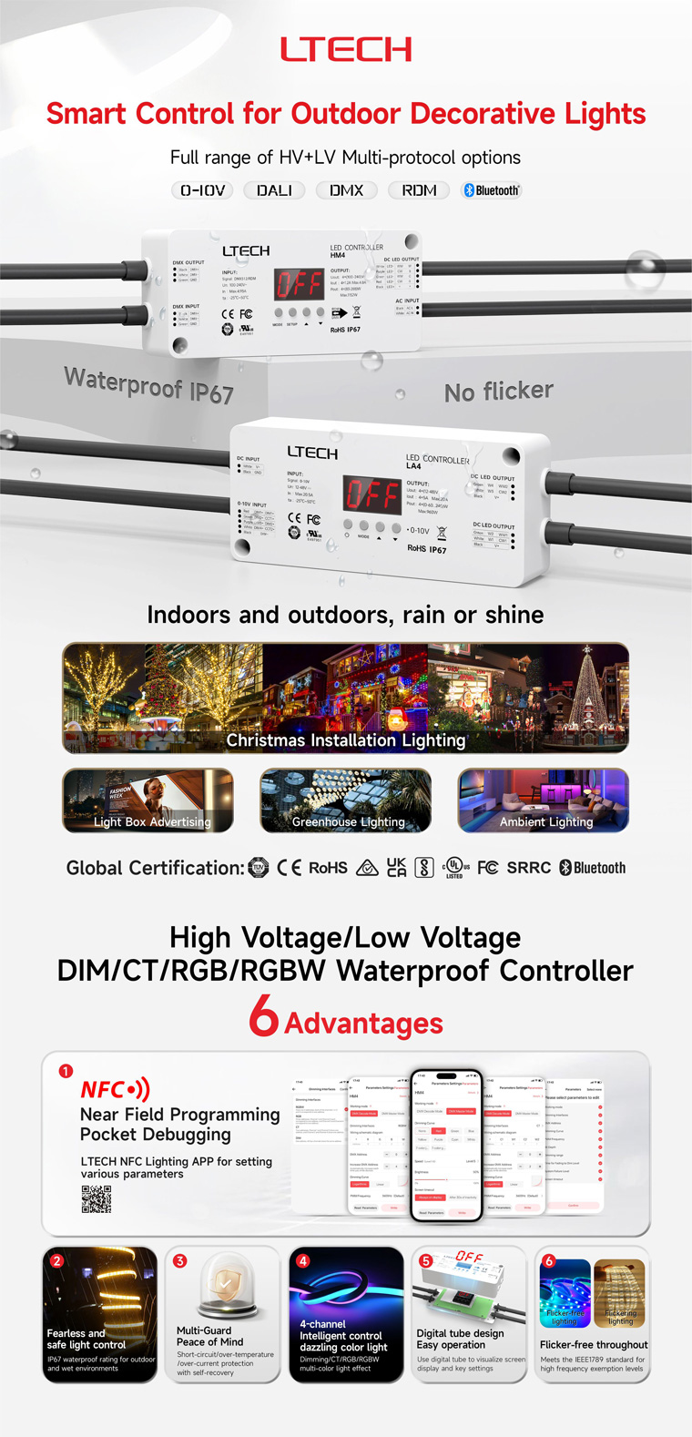 High-Voltage/Low-Voltage Weatherproof Controllers and High-Power Waterproof Power Supplies Lead the Spotlight. Engineered exclusively for outdoor lighting applications, these solutions effortlessly withstand harsh weather conditions, Delivering vibrant illumination and unmatched durability in extreme environments.