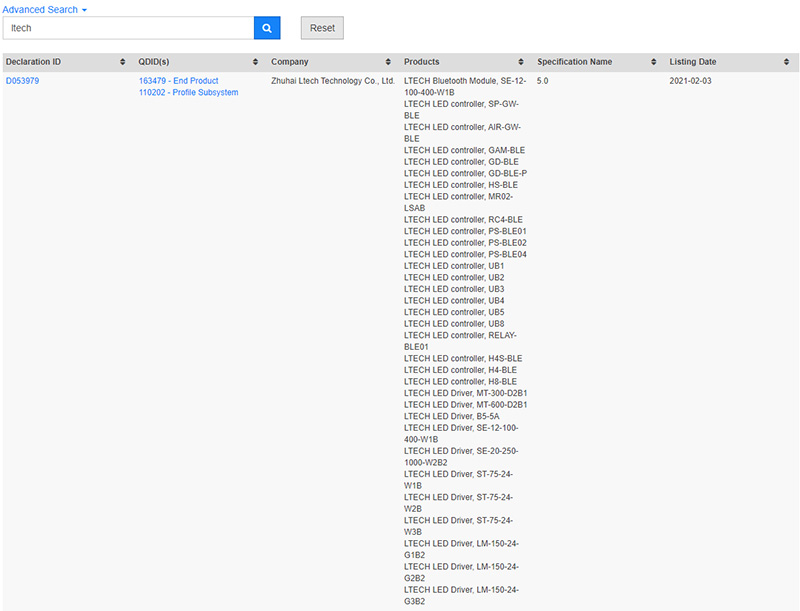 LTECH’s full line of Bluetooth products have been listed in the product database on the official website.